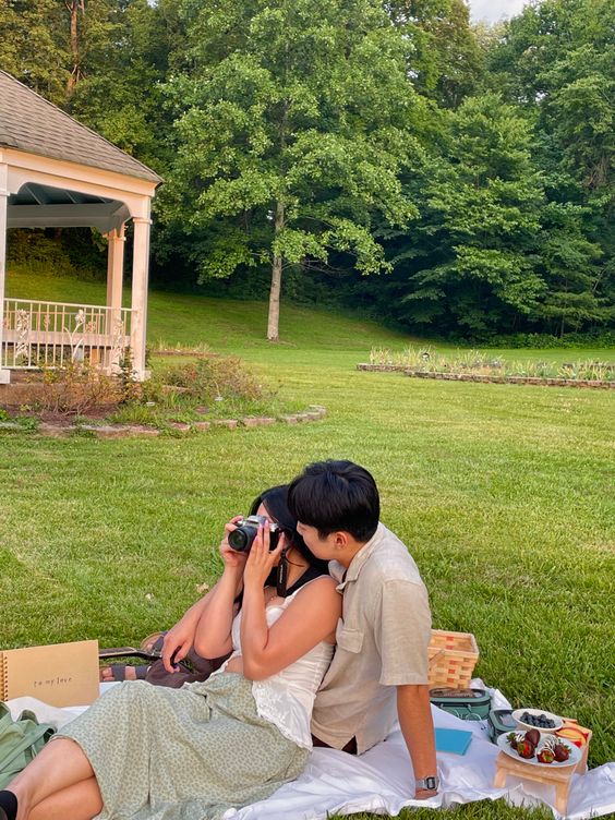 You really can’t go wrong with having a sunset outdoor picnic as an anniversary date idea.