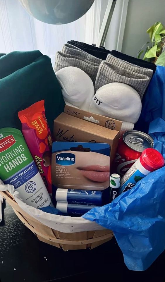 You can make the gift box themed according to his favorite hobbies and interests. What does he enjoy doing?