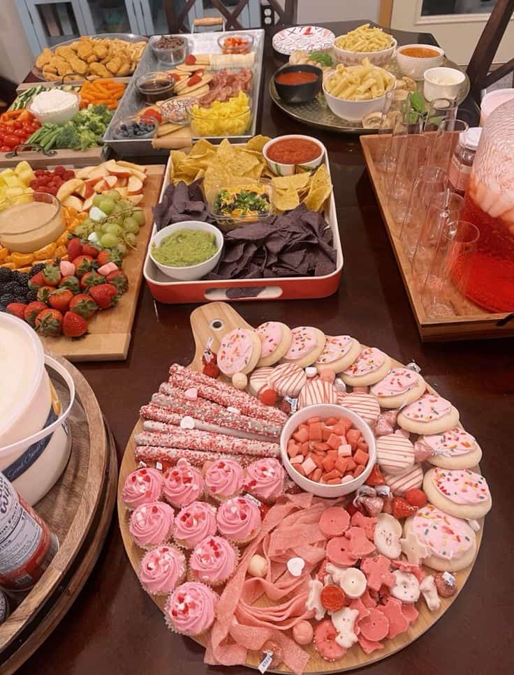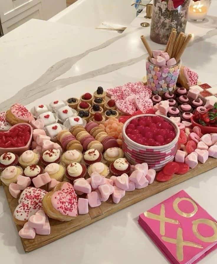 You can’t go wrong with a Valentine’s Day charcuterie board and some ideas for food include: