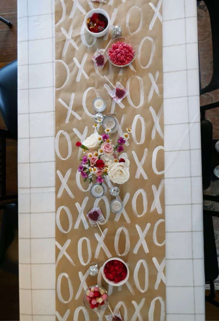 DIY your table runner by getting a roll of brown paper and painting it with XOXO. This is such a cute idea!